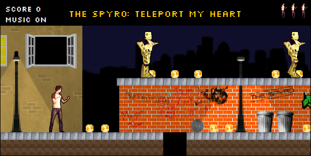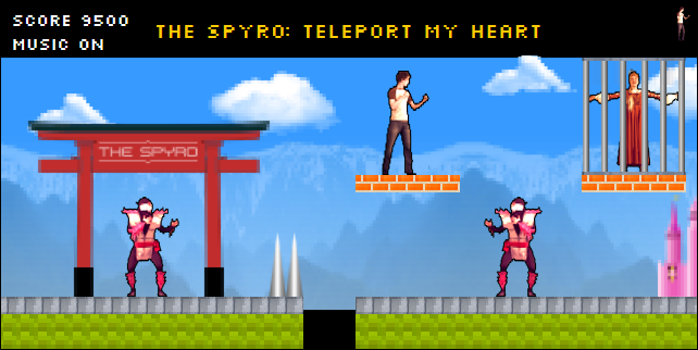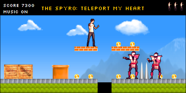 Teleport My Heart -peli tehtiin tukemaan The Spyro -yhtyeen Teleport My Heart -musiikkivideon markkinointia. Koska musiikkivideossa videopeli on keskeisessä roolissa ja pelin grafiikat oli videota varten joka tapauksessa tehty, oli pelin tekeminen luontevaa. Pelin läpäistyä pelaaja voi leveillä tuloksellaan jakamalla pisteensä Facebookissa.